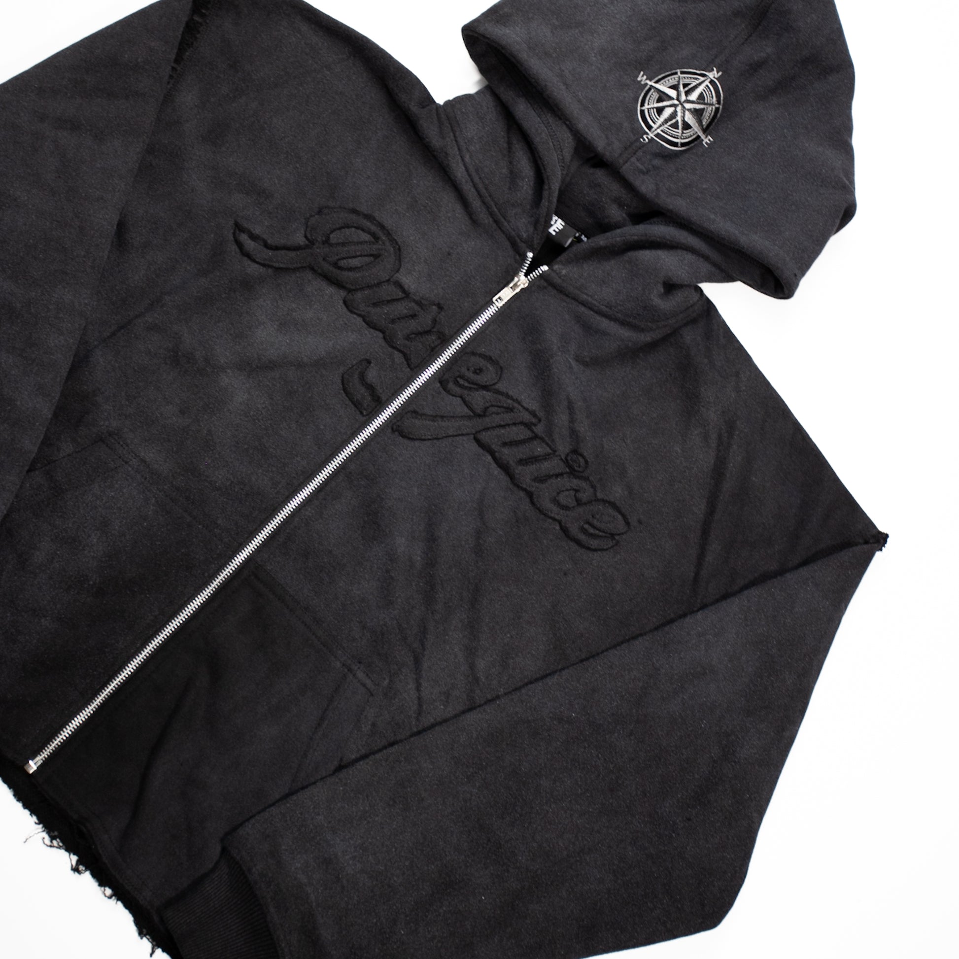 Black Acid Washed PURE COMPASS Tracksuit Hoodie (Men's) - Made To Order